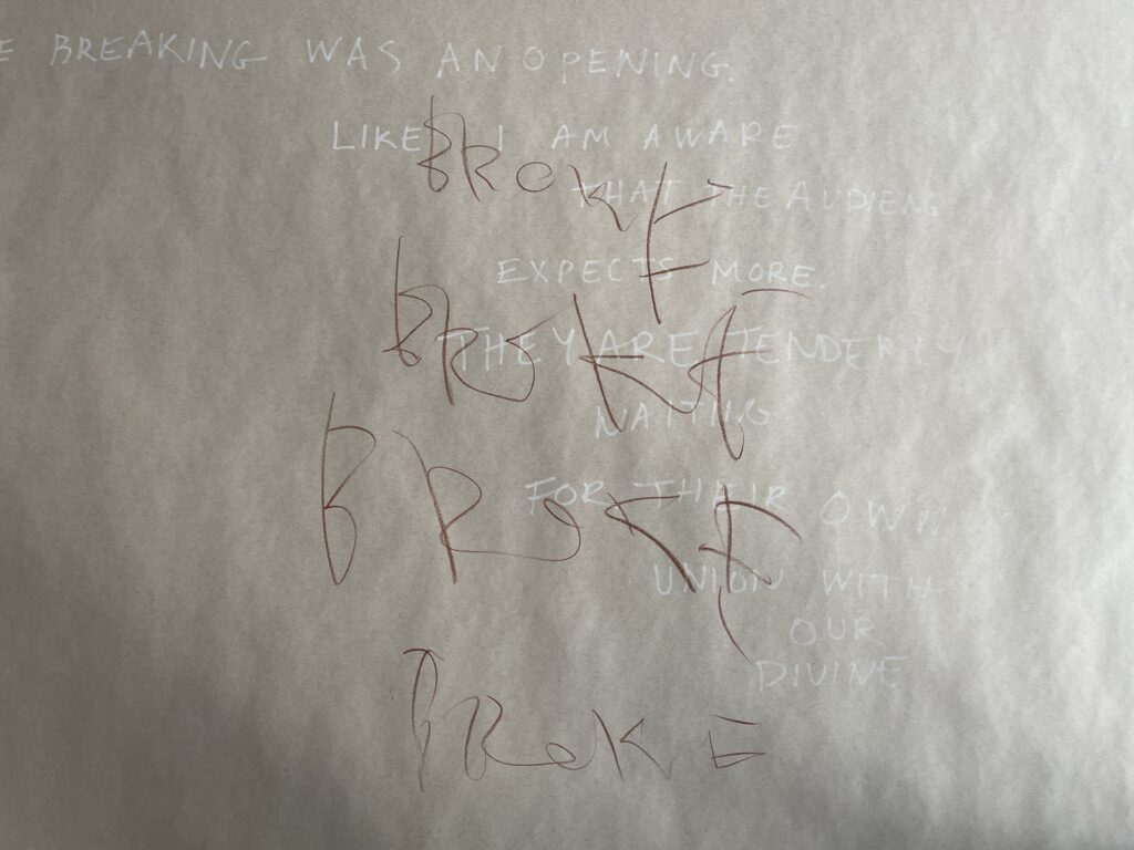 Performance Night transits Day (2026) Garment of the Interior (2022-2024) For Selma (2022) Collaboration with Hadar Ahuvia (2016-2022) Tidal (2019) Untitled Work for Voice (2018) Private Country (2013) Thunder (2016) The Near(ness) (2010)